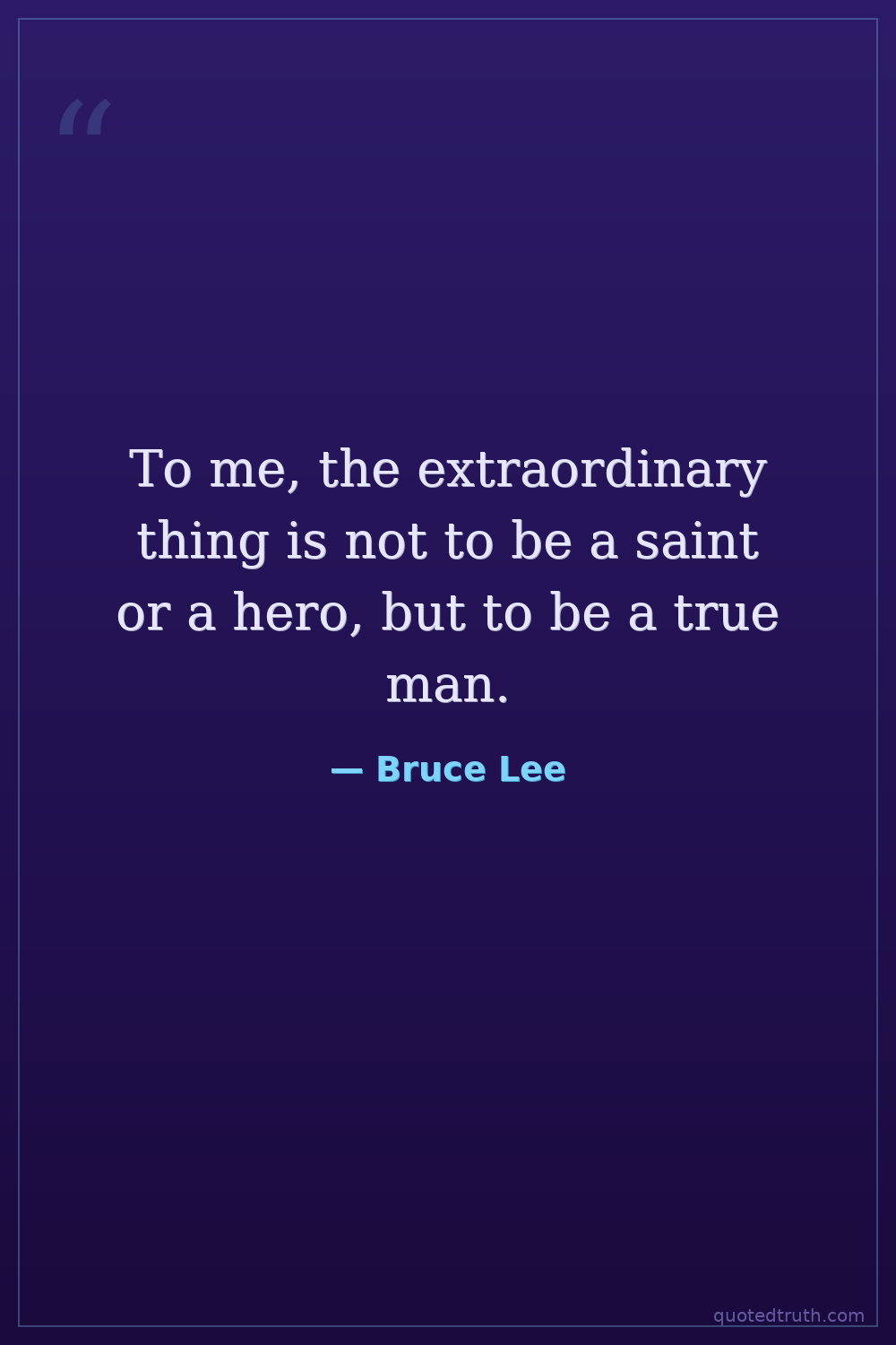 To me, the extraordinary thing is not to be a saint or a hero, but to be a true man.