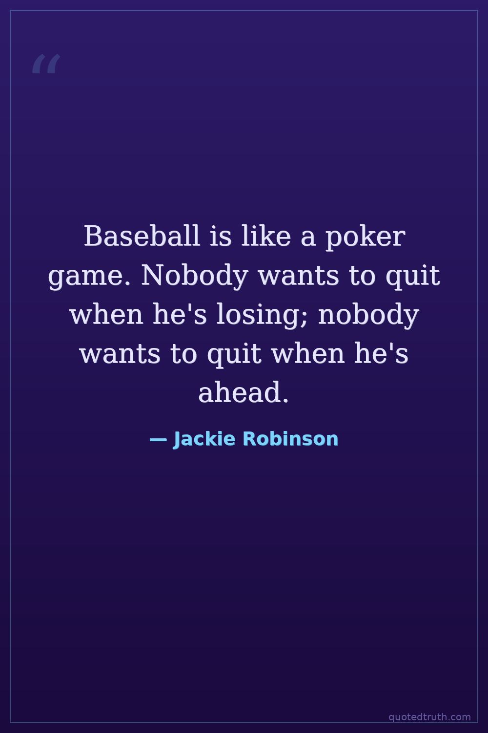 Baseball is like a poker game. Nobody wants to quit when he's losing; nobody wants to quit when he's ahead.