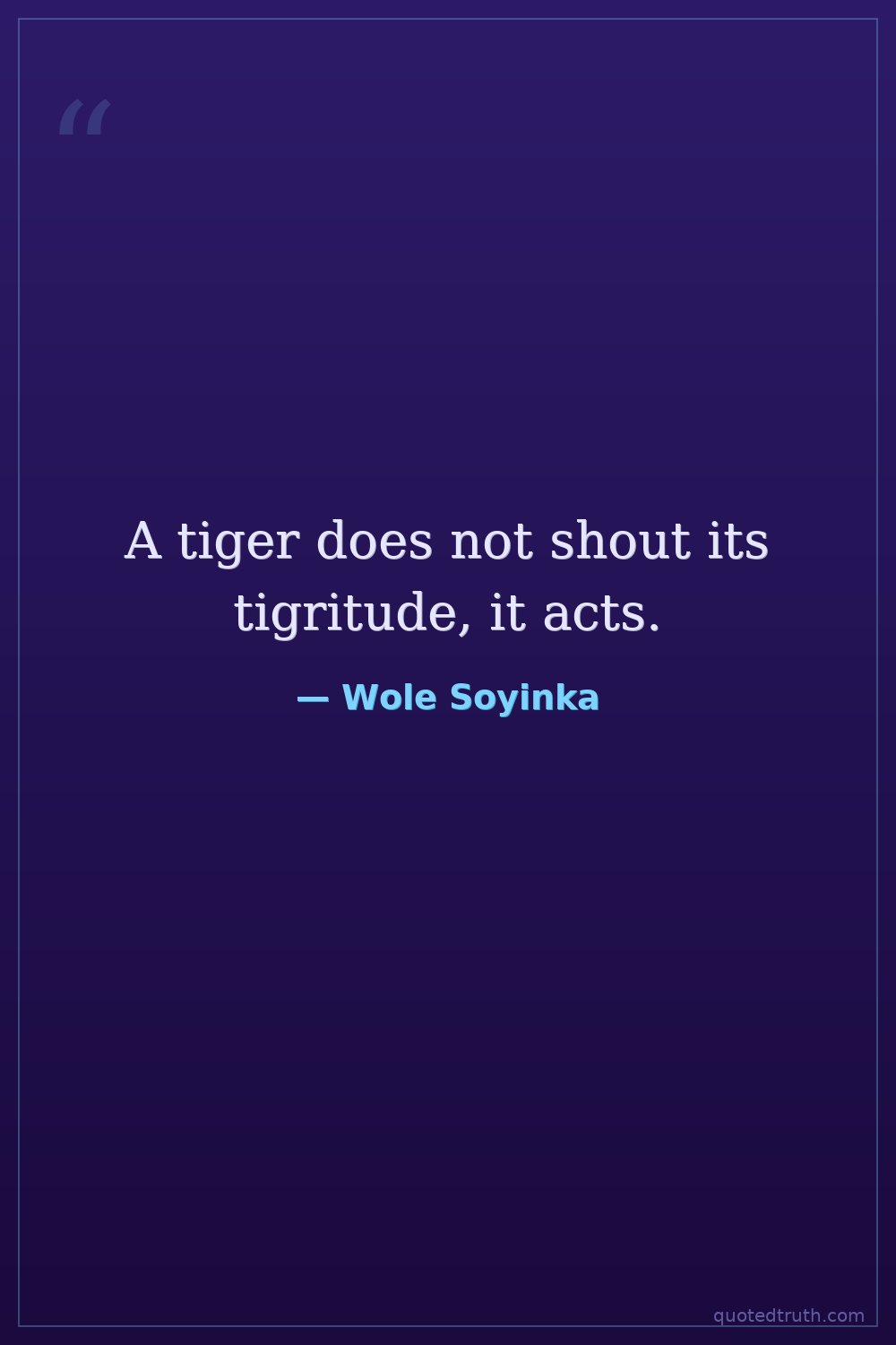 A tiger does not shout its tigritude, it acts.