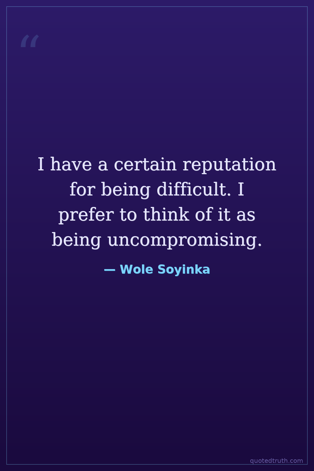 I have a certain reputation for being difficult. I prefer to think of it as being uncompromising.