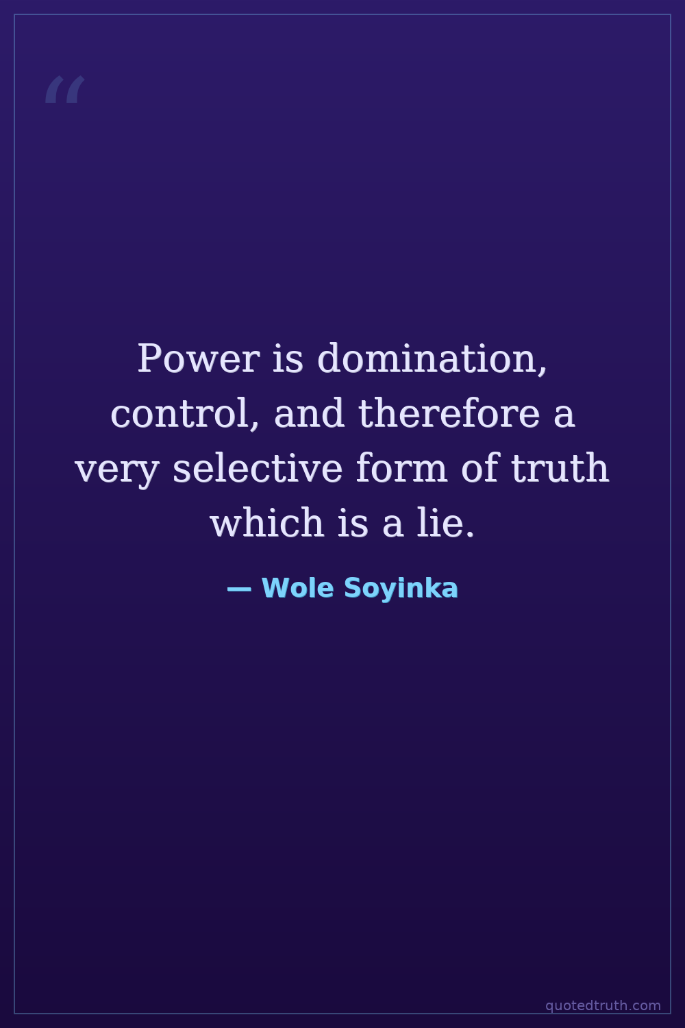 Power is domination, control, and therefore a very selective form of truth which is a lie.