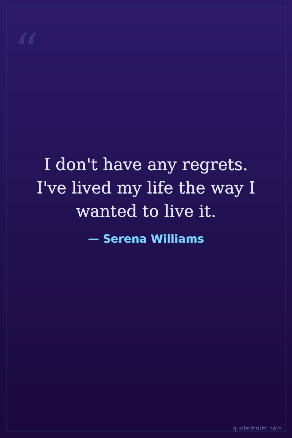 I don't have any regrets. I've lived my life the way I wanted to live it.
