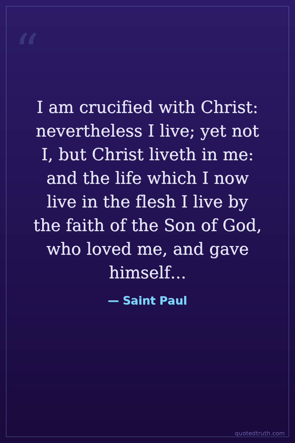 I am crucified with Christ: nevertheless I live; yet not I, but Christ liveth in me: and the life which I now live in the flesh I live by the faith of the Son of God, who loved me, and gave himself for me.