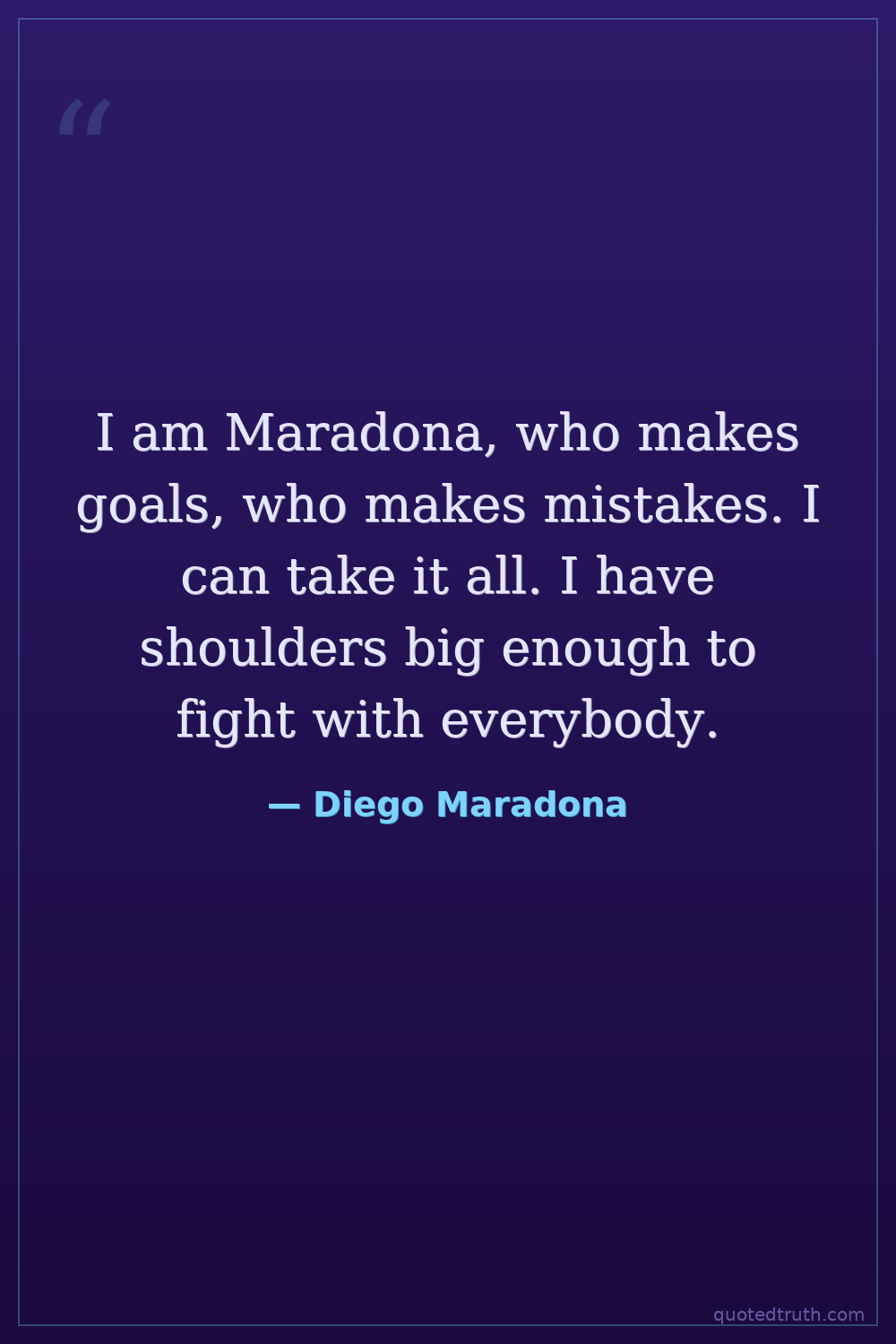 I am Maradona, who makes goals, who makes mistakes. I can take it all. I have shoulders big enough to fight with everybody.