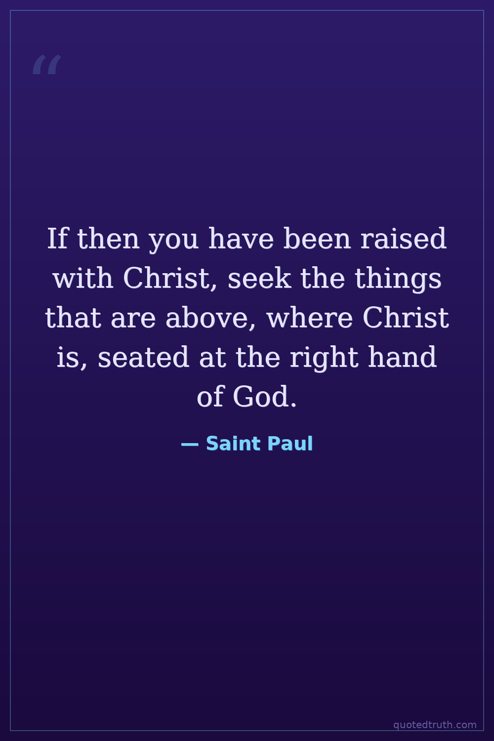 If then you have been raised with Christ, seek the things that are above, where Christ is, seated at the right hand of God.