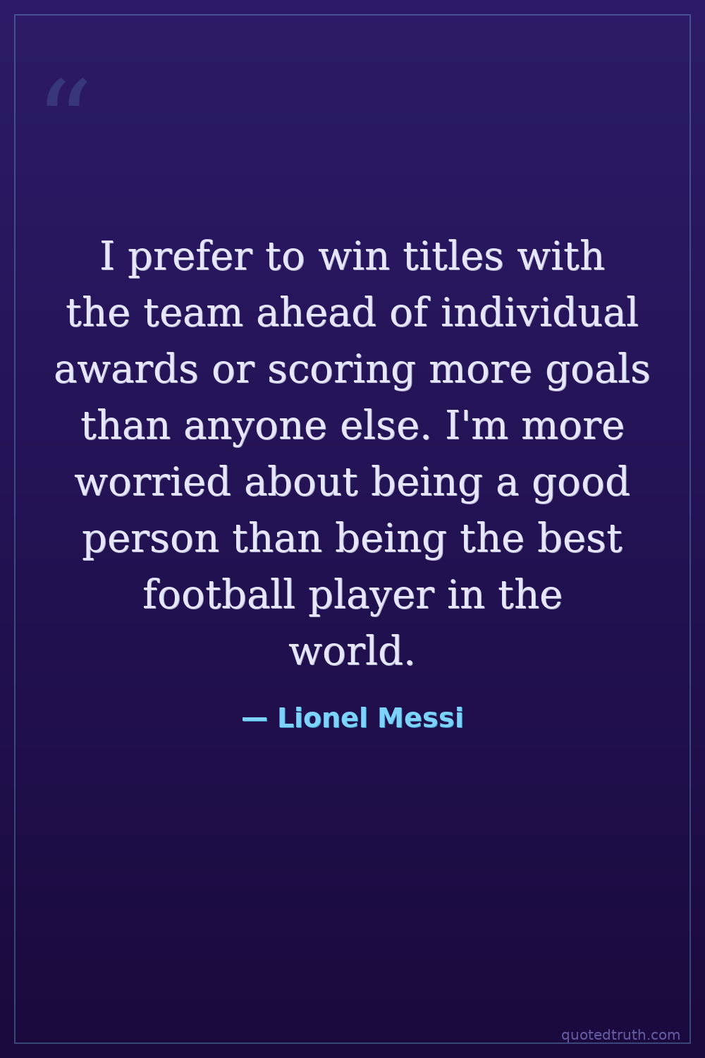 I prefer to win titles with the team ahead of individual awards or scoring more goals than anyone else. I'm more worried about being a good person than being the best football player in the world.