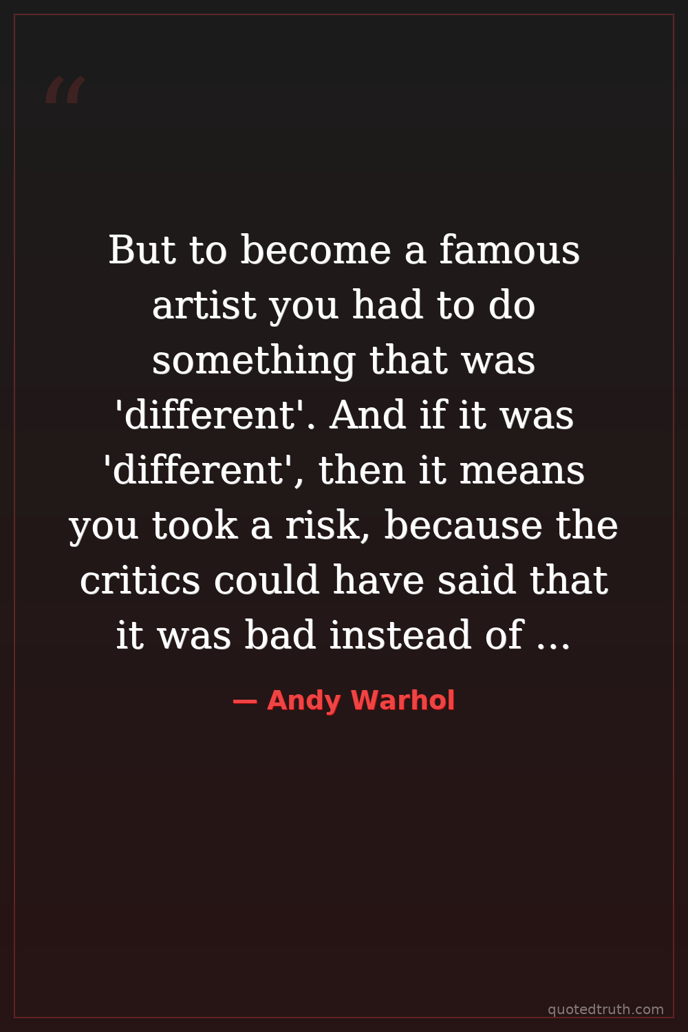 But to become a famous artist you had to do something that was 'different'. And if it was 'different', then it means you took a risk, because the critics could have said that it was bad instead of good… They always say new art is bad for a while, that's the risk – that's the pain you have to have for fame.