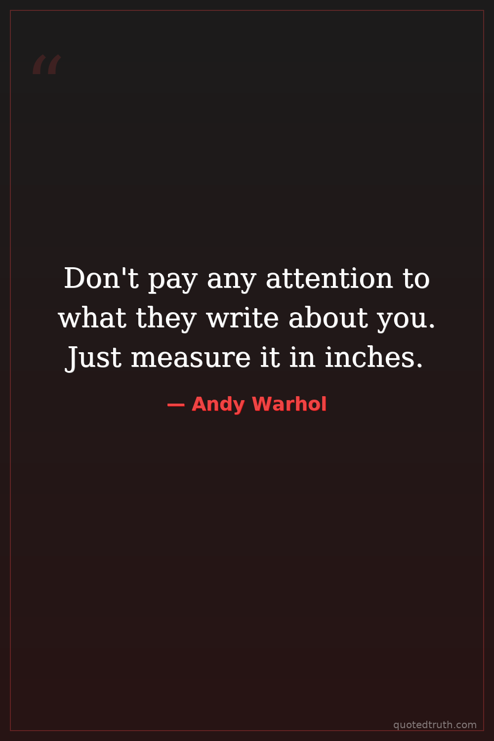 Don't pay any attention to what they write about you. Just measure it in inches.