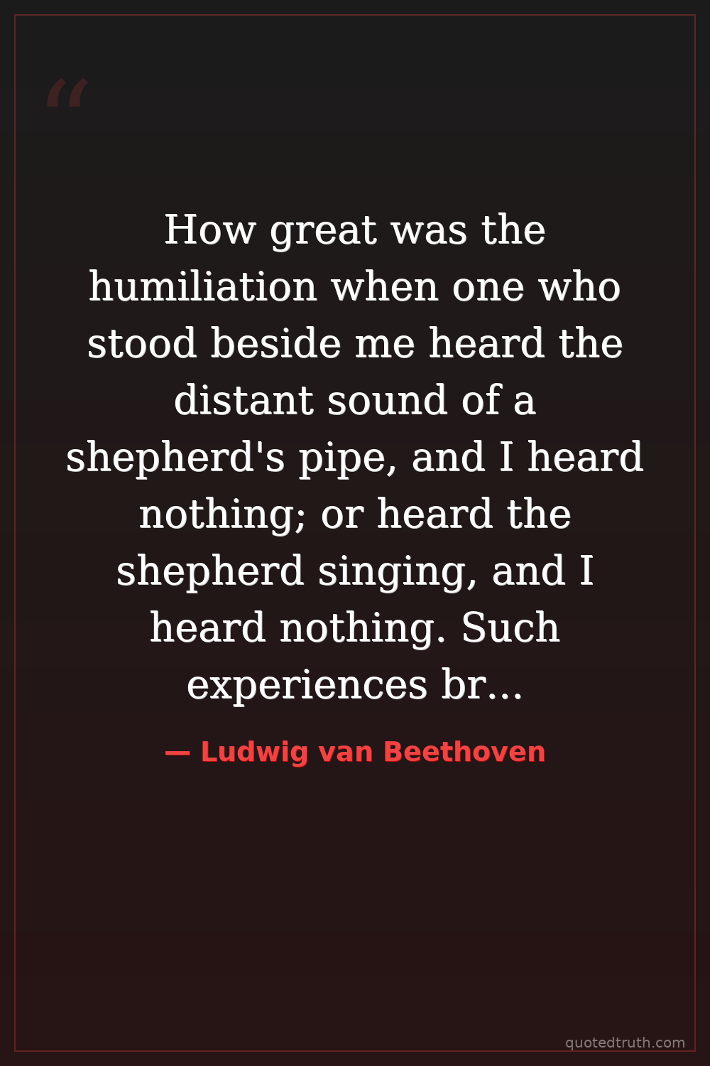 How great was the humiliation when one who stood beside me heard the distant sound of a shepherd's pipe, and I heard nothing; or heard the shepherd singing, and I heard nothing. Such experiences brought me to the verge of despair;--but little more and I should have put an end to my life.