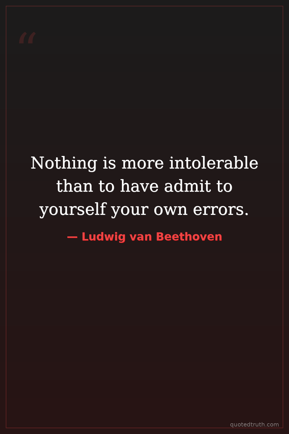 Nothing is more intolerable than to have admit to yourself your own errors.
