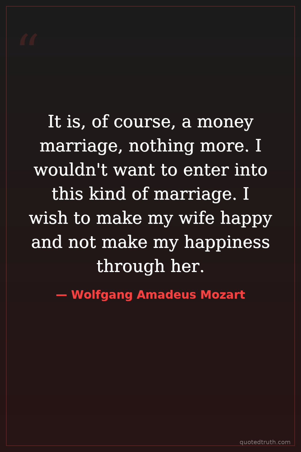 It is, of course, a money marriage, nothing more. I wouldn't want to enter into this kind of marriage. I wish to make my wife happy and not make my happiness through her.