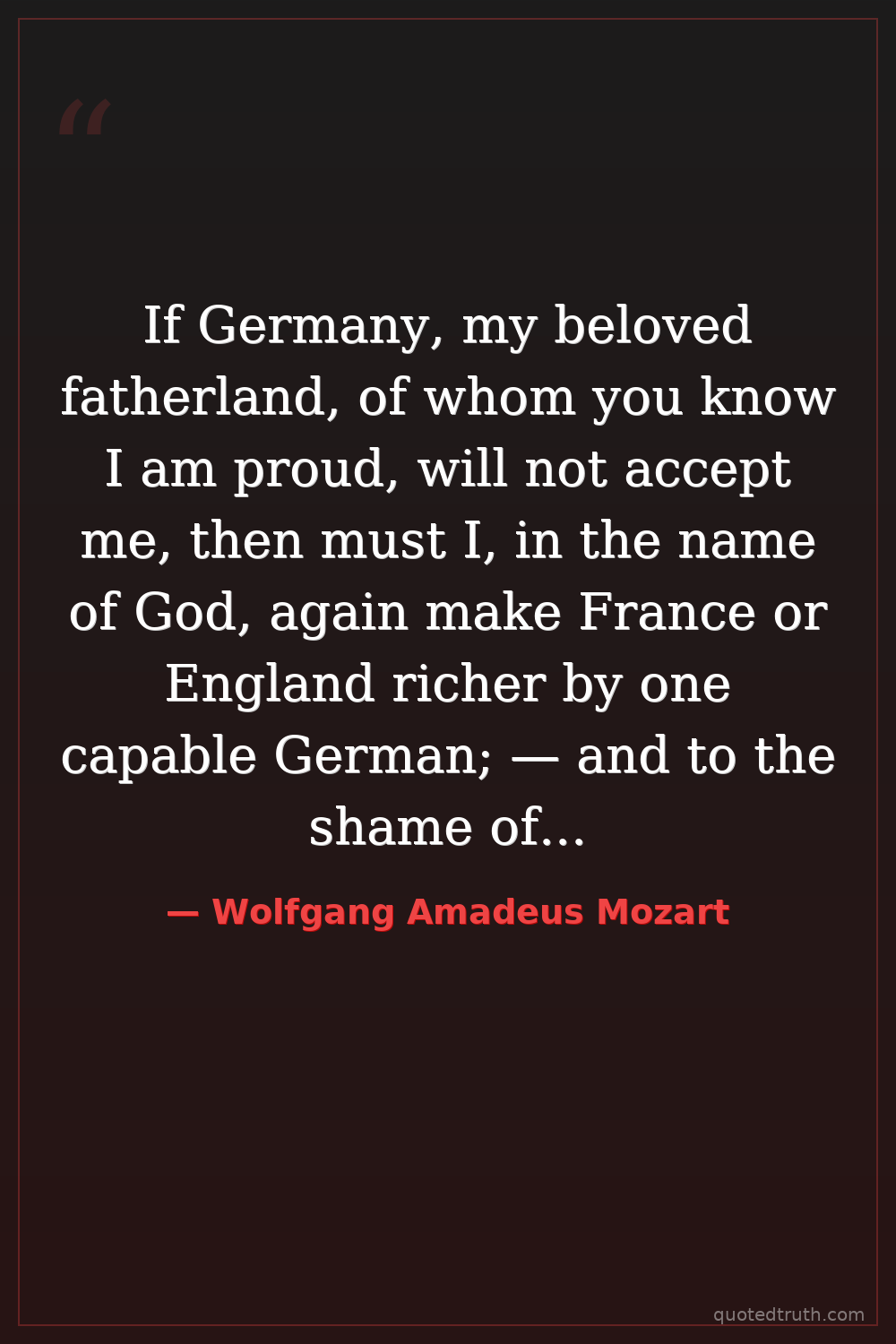 If Germany, my beloved fatherland, of whom you know I am proud, will not accept me, then must I, in the name of God, again make France or England richer by one capable German; — and to the shame of the German nation.