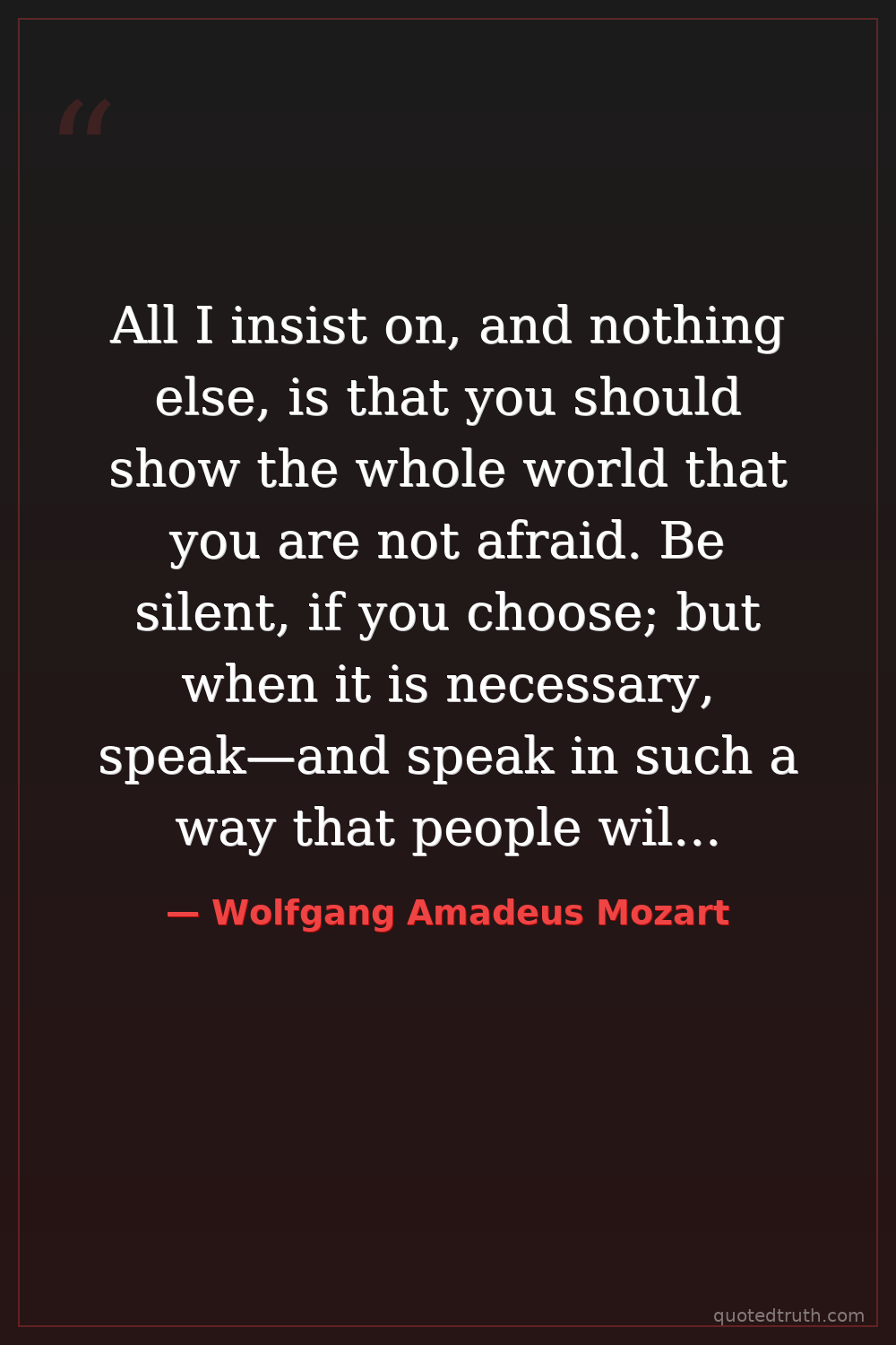 All I insist on, and nothing else, is that you should show the whole world that you are not afraid. Be silent, if you choose; but when it is necessary, speak—and speak in such a way that people will remember it.