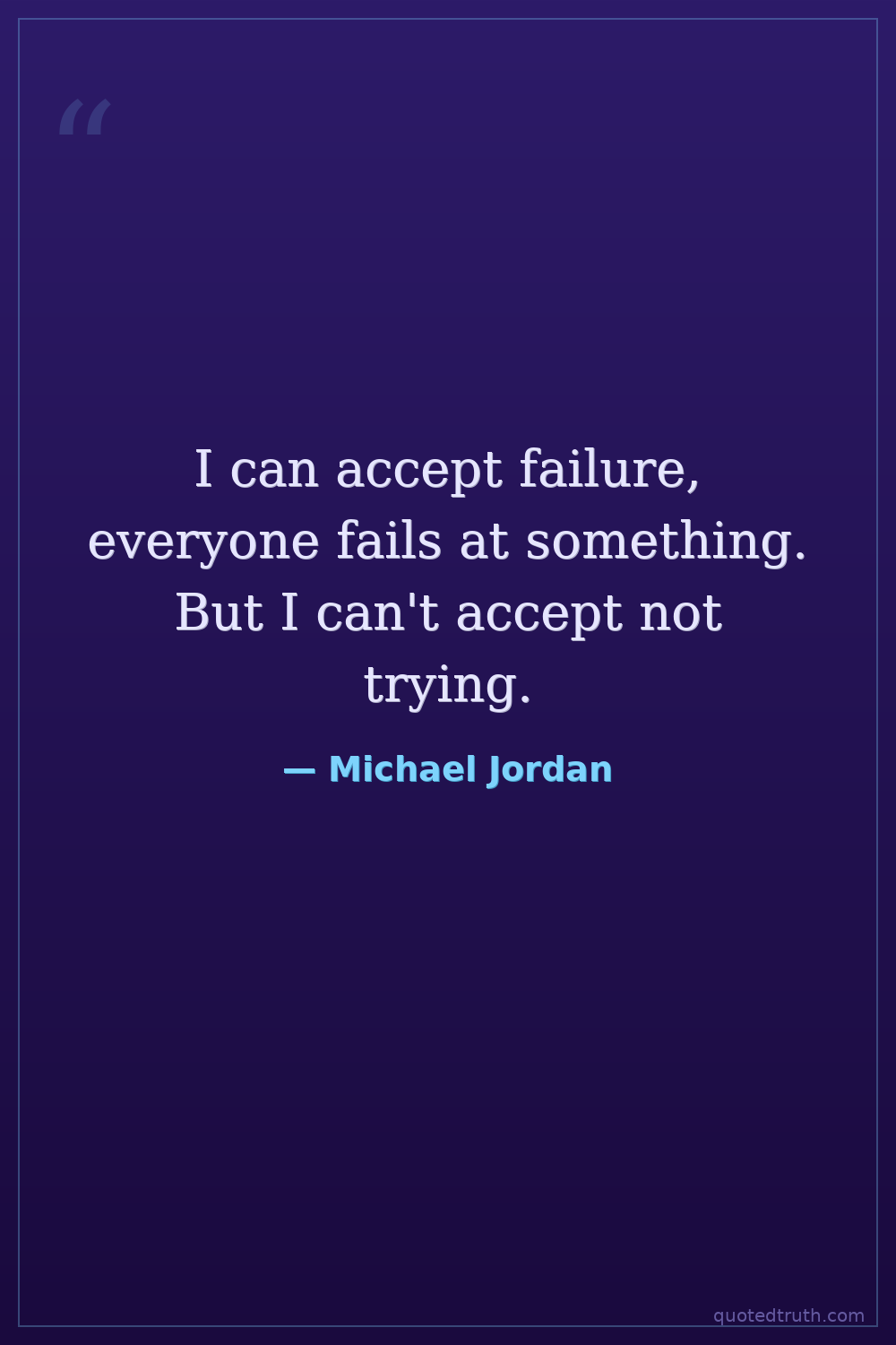 I can accept failure, everyone fails at something. But I can't accept not trying.
