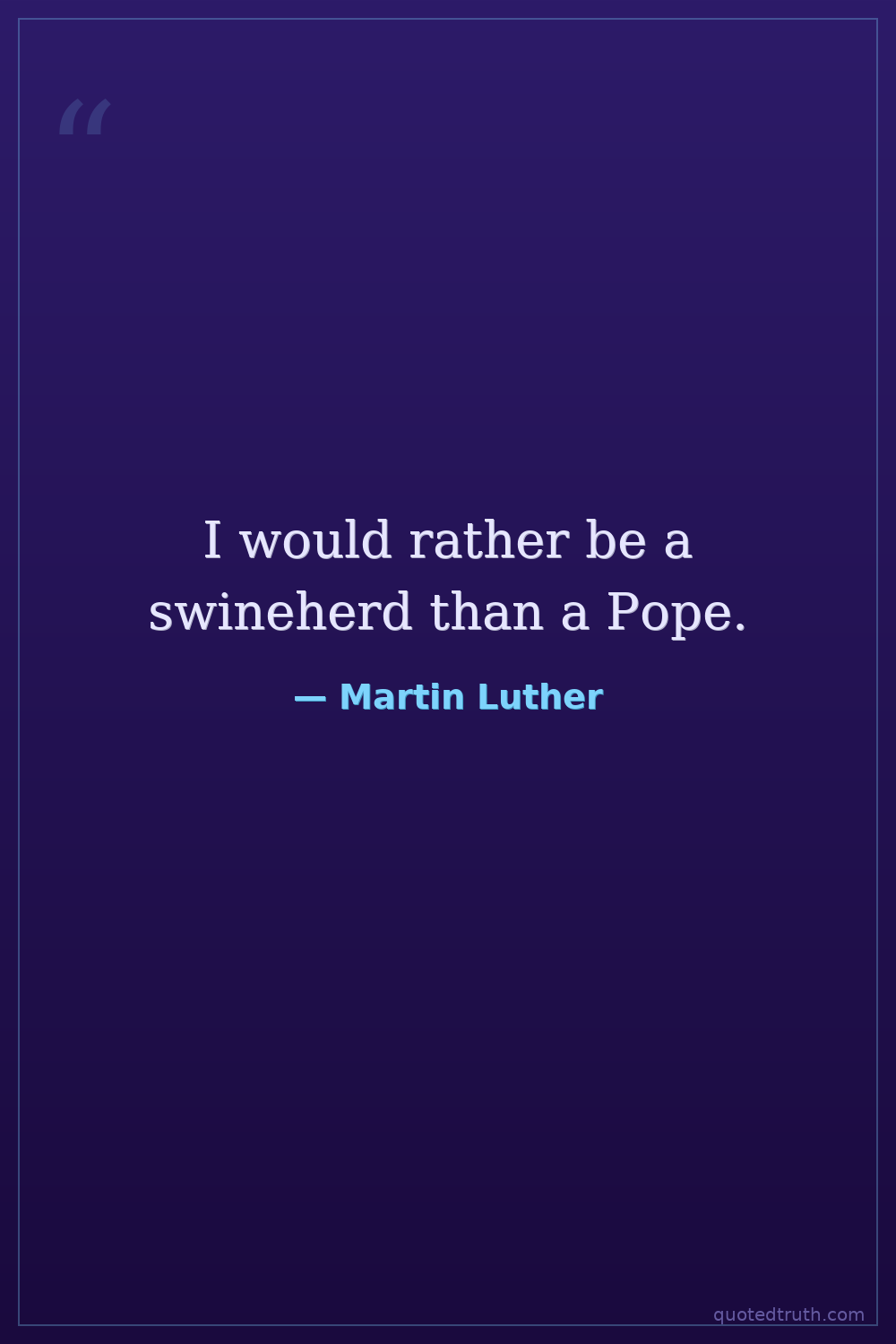 I would rather be a swineherd than a Pope.