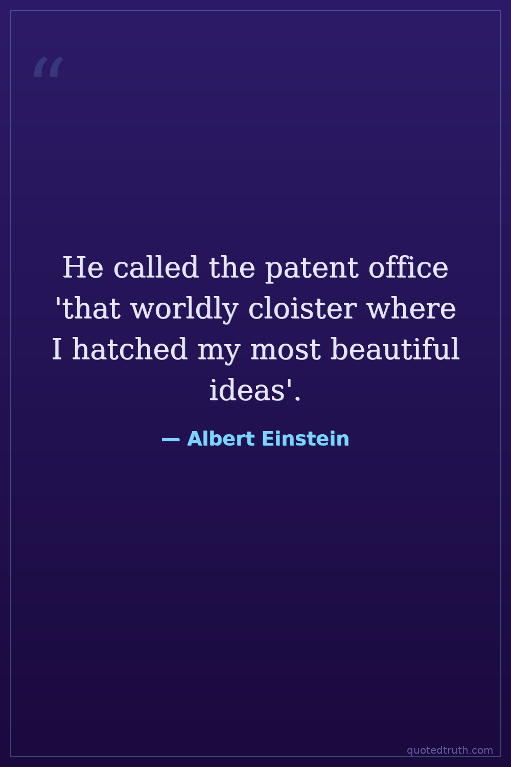 He called the patent office 'that worldly cloister where I hatched my most beautiful ideas'.