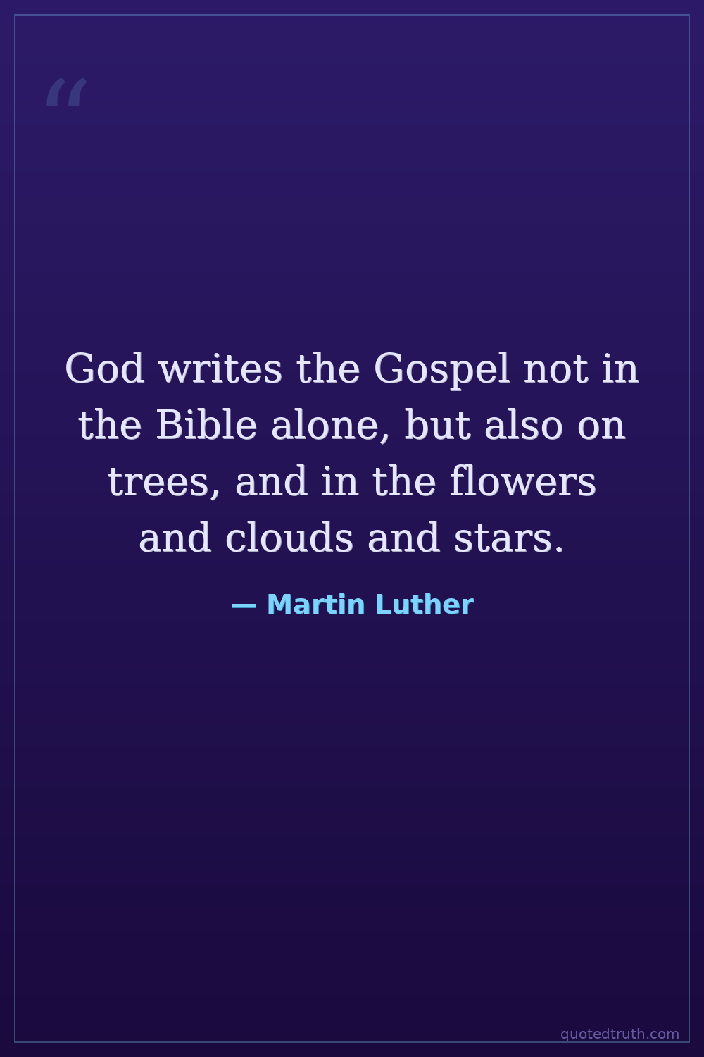 God writes the Gospel not in the Bible alone, but also on trees, and in the flowers and clouds and stars.