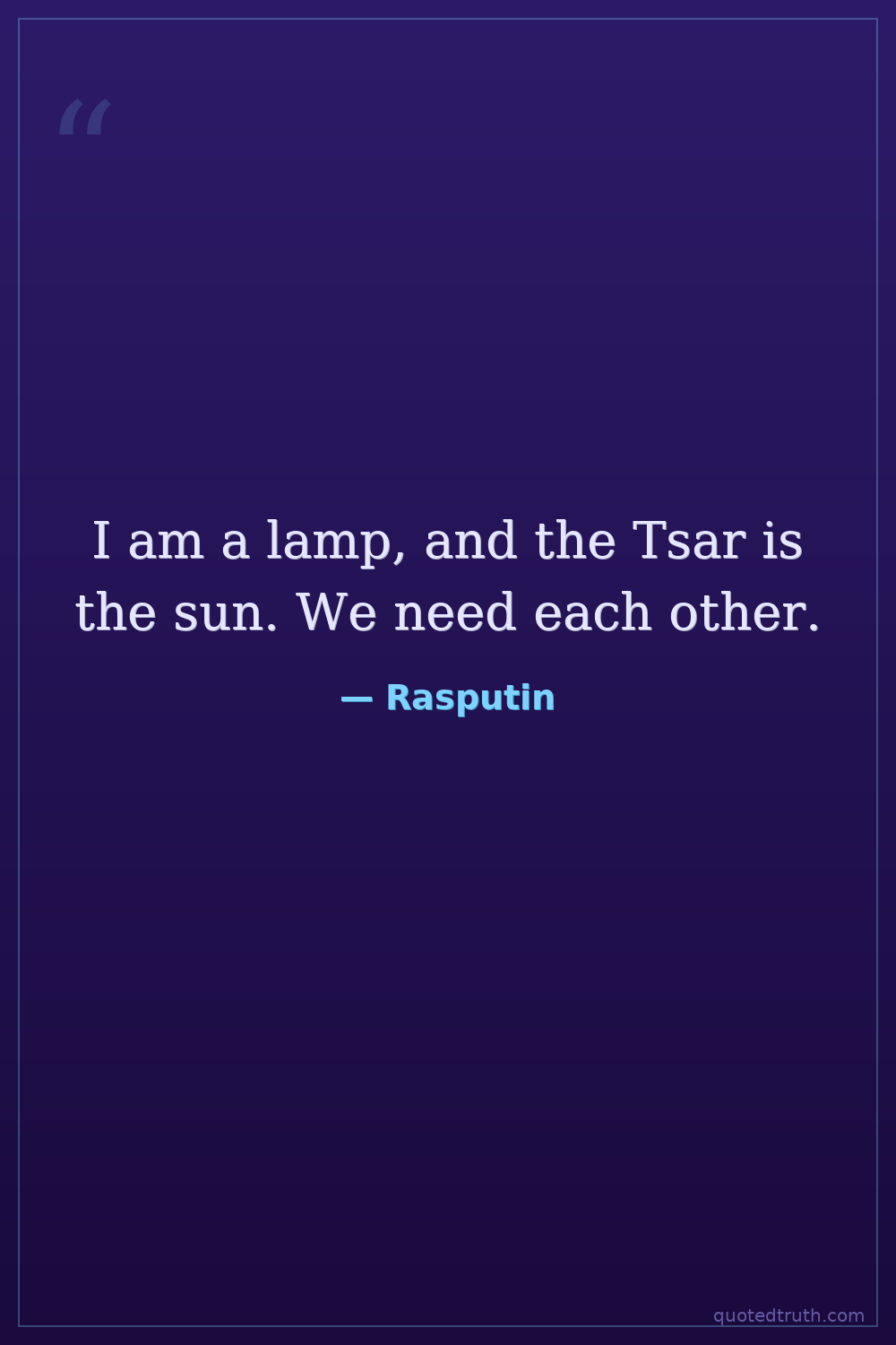 I am a lamp, and the Tsar is the sun. We need each other.