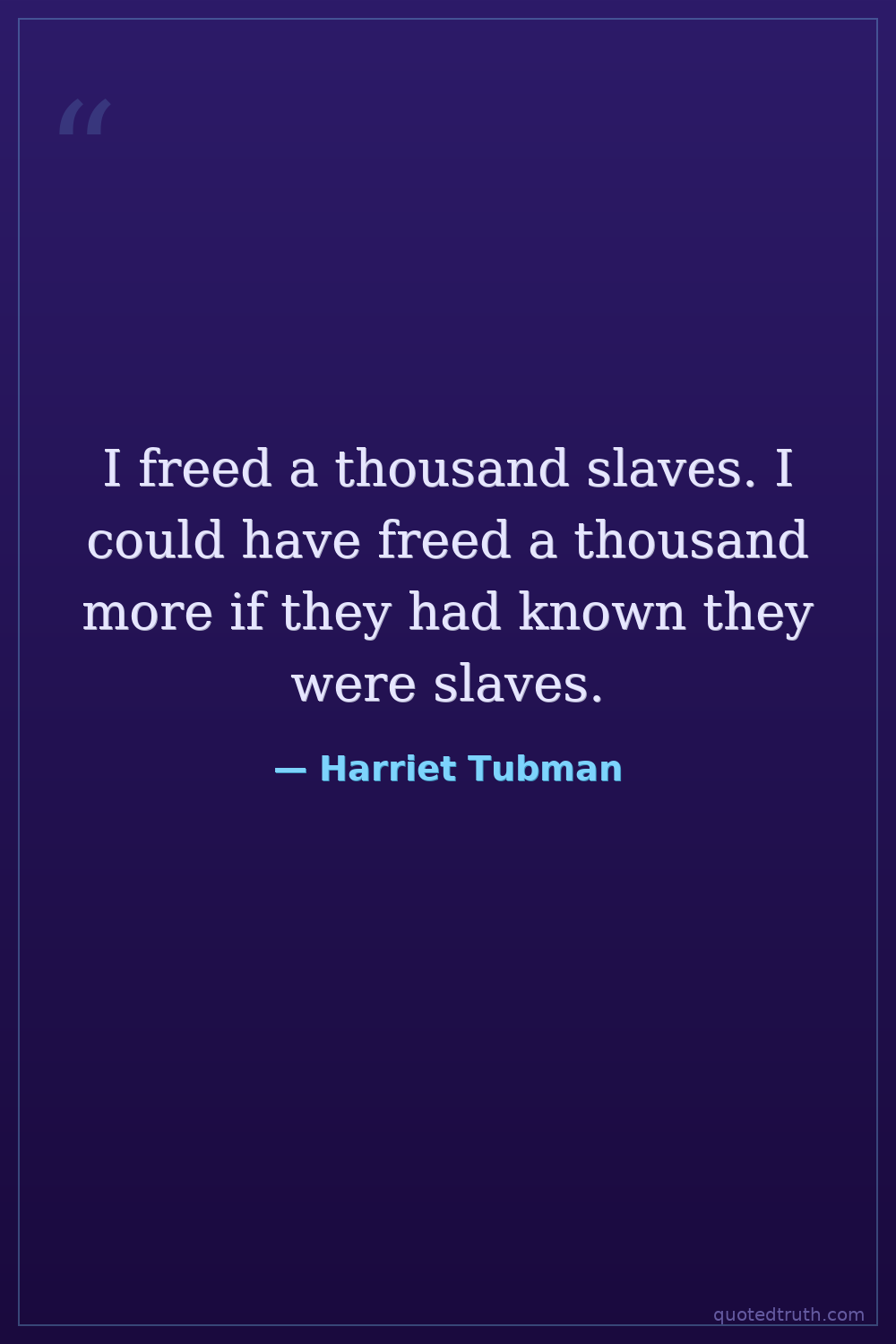 I freed a thousand slaves. I could have freed a thousand more if they had known they were slaves.