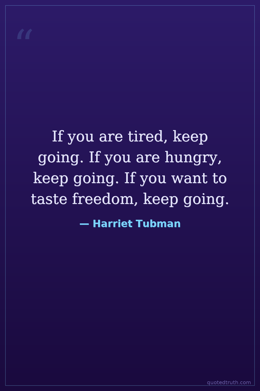 If you are tired, keep going. If you are hungry, keep going. If you want to taste freedom, keep going.