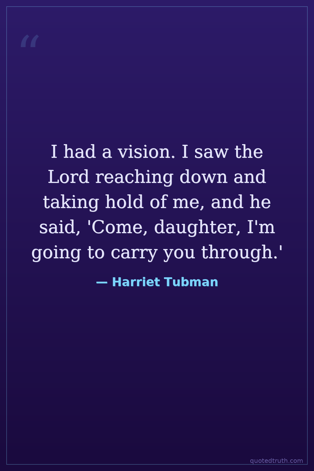 I had a vision. I saw the Lord reaching down and taking hold of me, and he said, 'Come, daughter, I'm going to carry you through.'