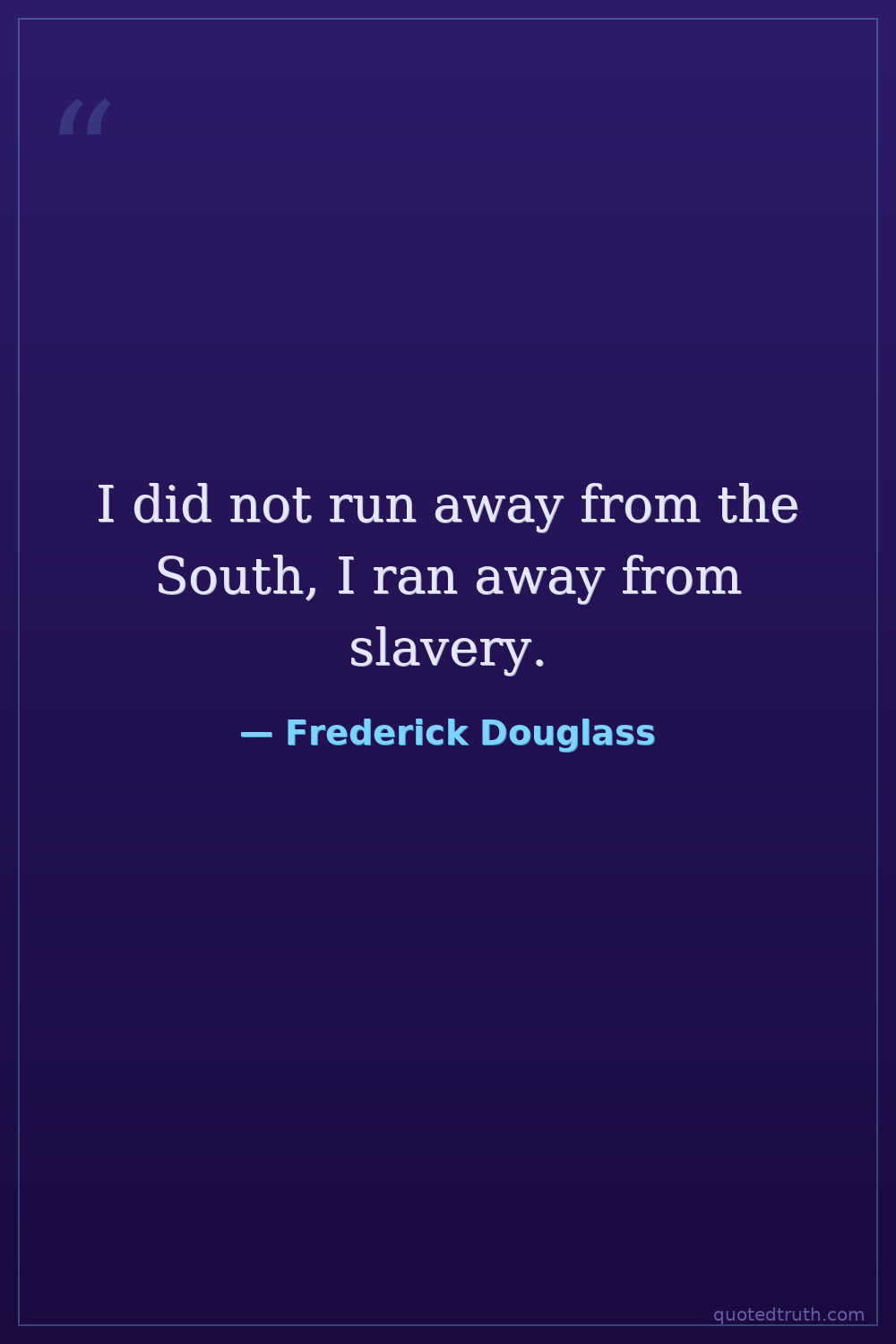 I did not run away from the South, I ran away from slavery.