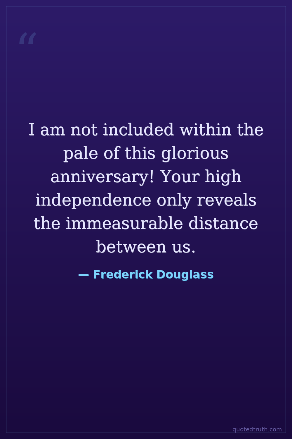 I am not included within the pale of this glorious anniversary! Your high independence only reveals the immeasurable distance between us.