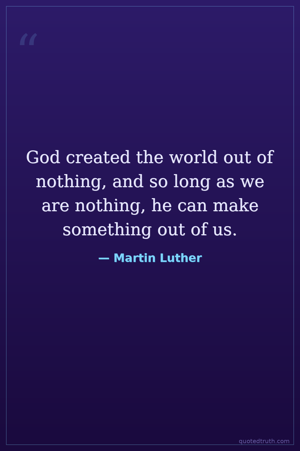 God created the world out of nothing, and so long as we are nothing, he can make something out of us.