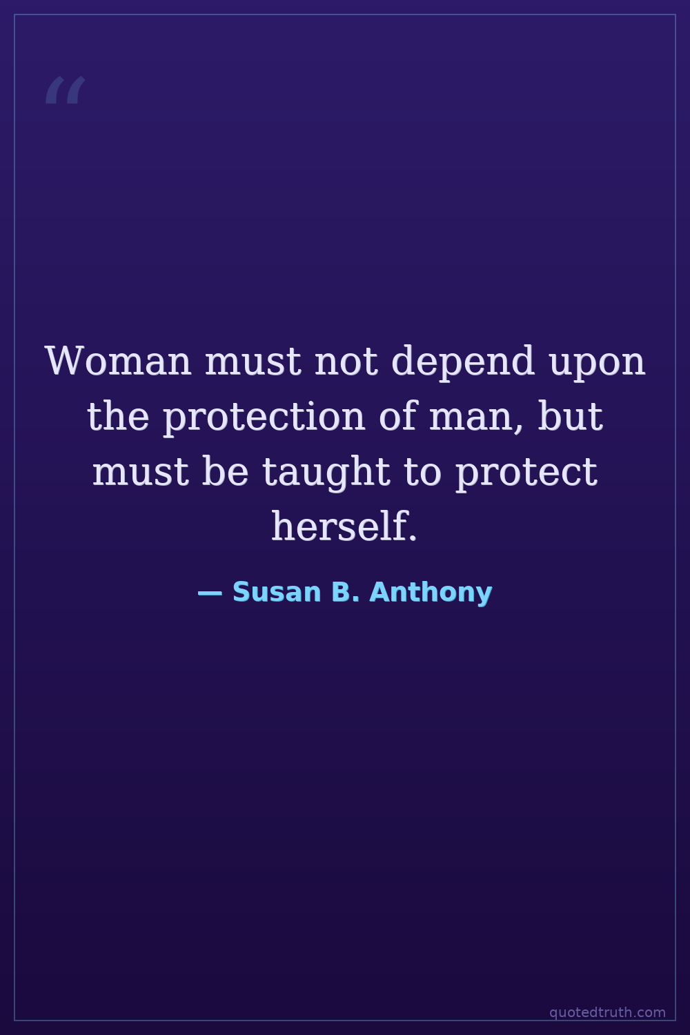 Woman must not depend upon the protection of man, but must be taught to protect herself.