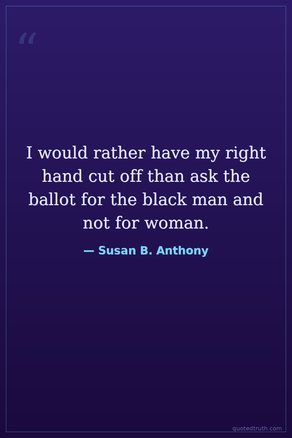 I would rather have my right hand cut off than ask the ballot for the black man and not for woman.