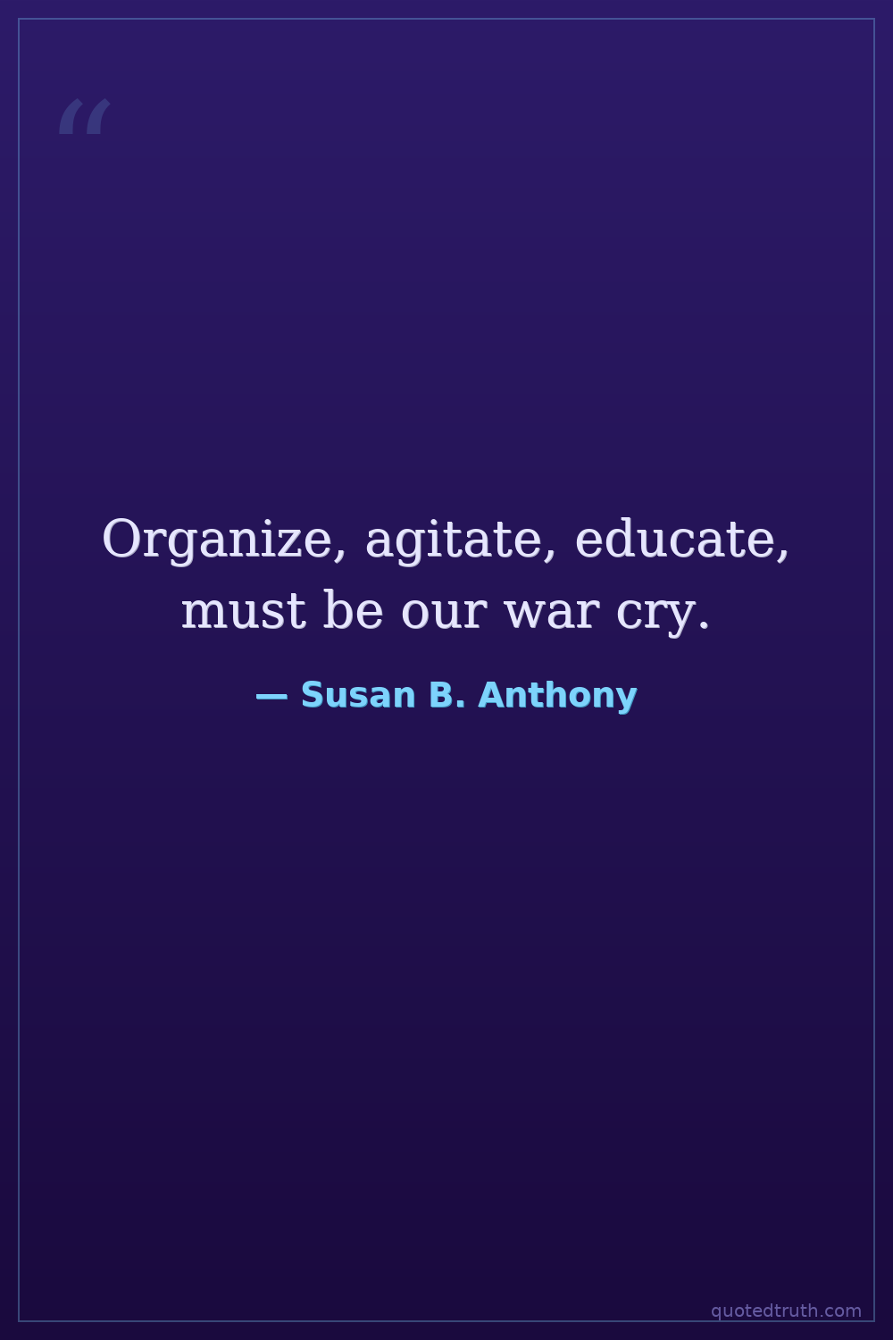 Strange & Unusual"The old anti-slavery school says, 'Wait until the Negro is safe, and then we will attend to the women.' But we say, 'No, we will not wait for the Negro, nor for anyone else.'"