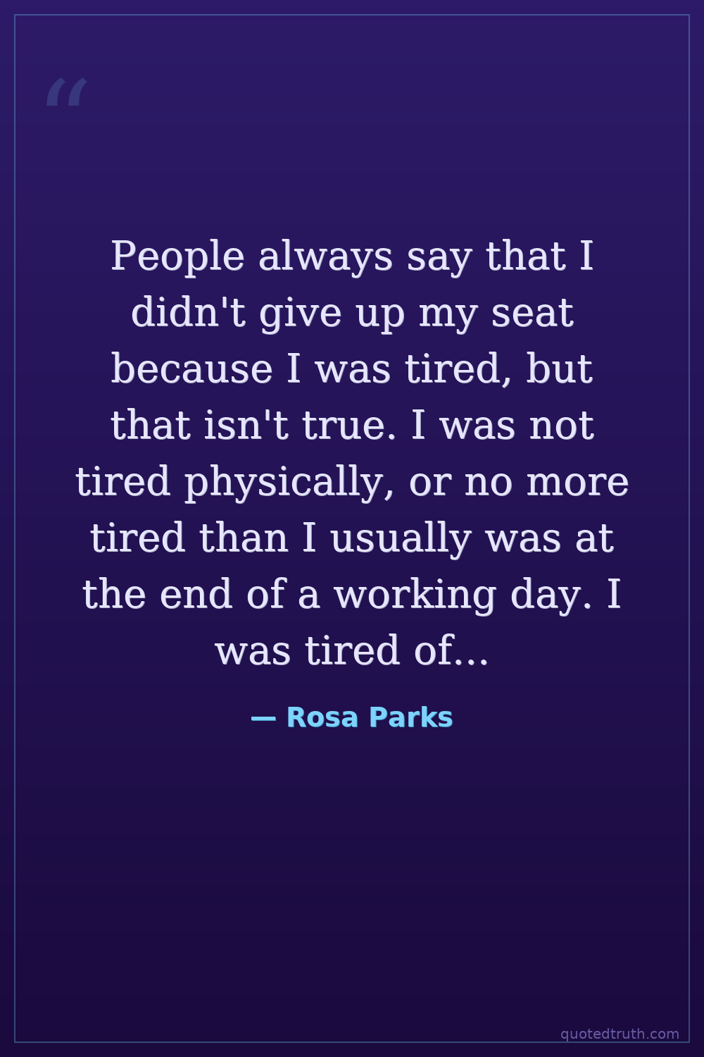 People always say that I didn't give up my seat because I was tired, but that isn't true. I was not tired physically, or no more tired than I usually was at the end of a working day. I was tired of giving in.