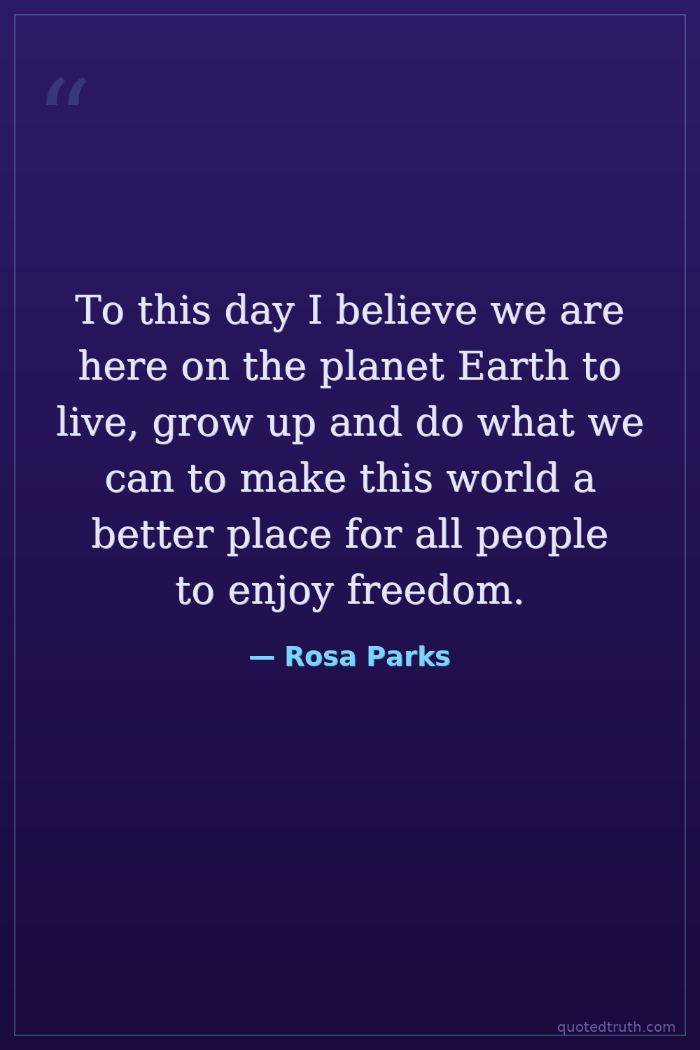 To this day I believe we are here on the planet Earth to live, grow up and do what we can to make this world a better place for all people to enjoy freedom.