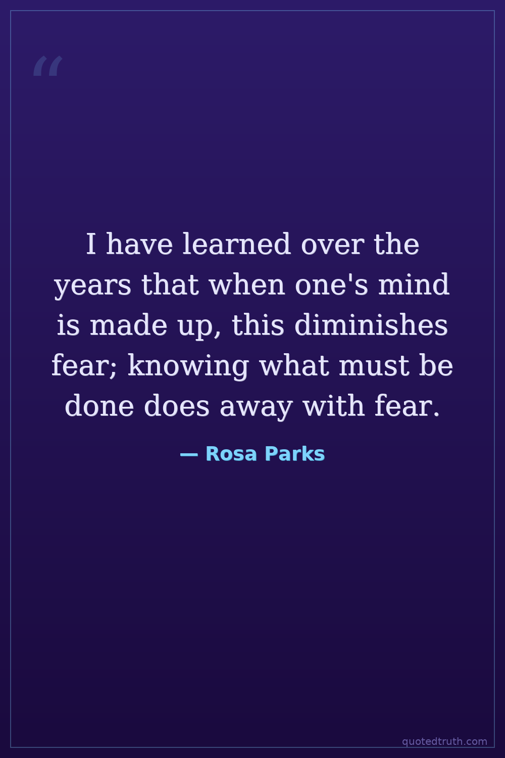 I have learned over the years that when one's mind is made up, this diminishes fear; knowing what must be done does away with fear.