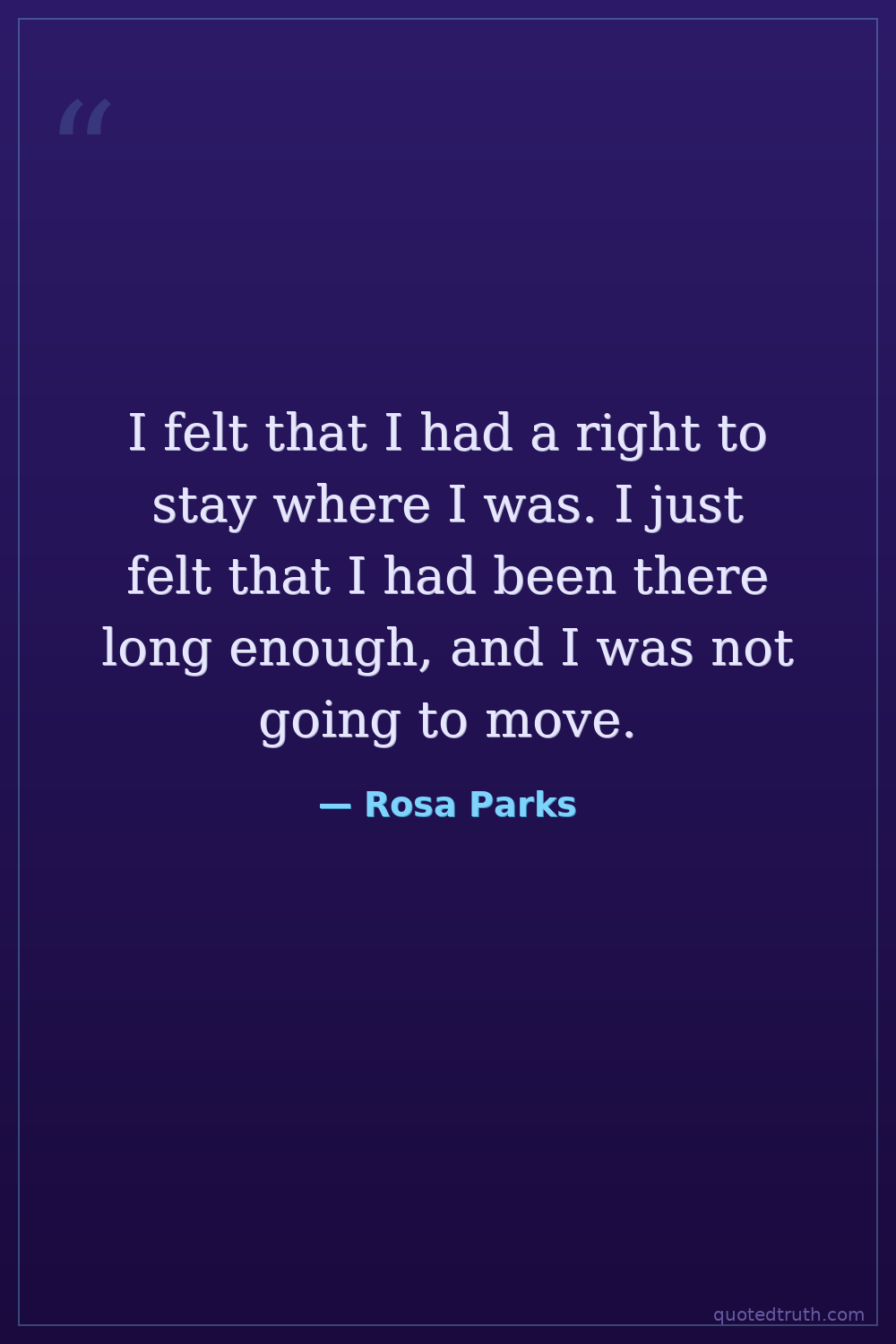 I felt that I had a right to stay where I was. I just felt that I had been there long enough, and I was not going to move.
