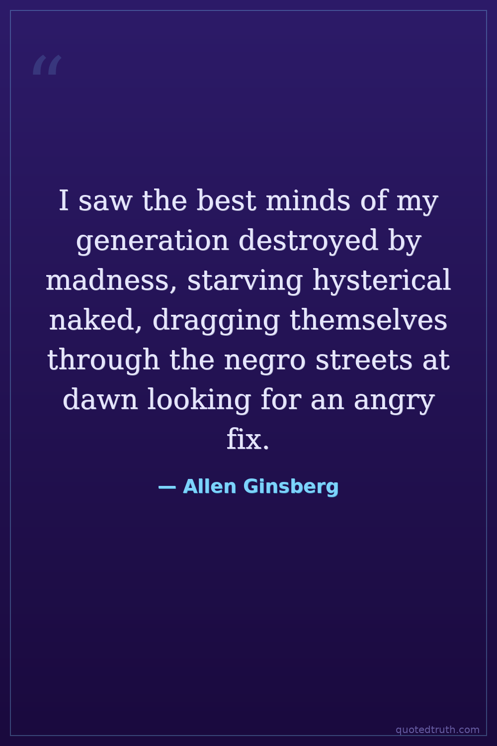 I saw the best minds of my generation destroyed by madness, starving hysterical naked, dragging themselves through the negro streets at dawn looking for an angry fix.