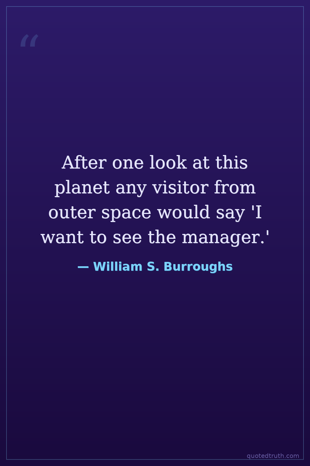 After one look at this planet any visitor from outer space would say 'I want to see the manager.'