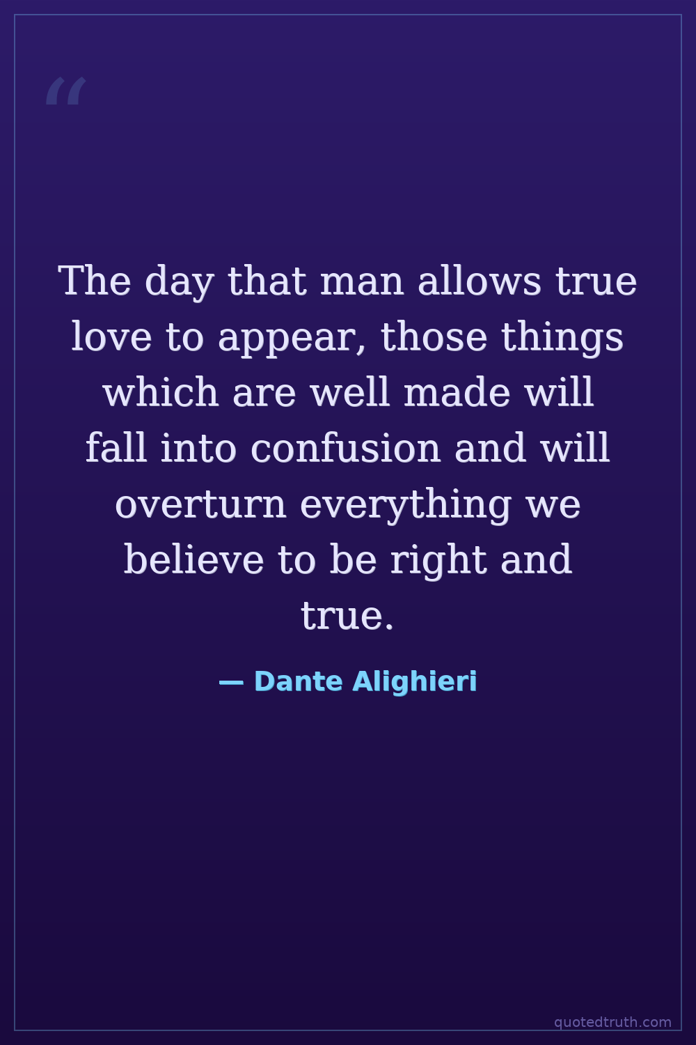 The day that man allows true love to appear, those things which are well made will fall into confusion and will overturn everything we believe to be right and true.