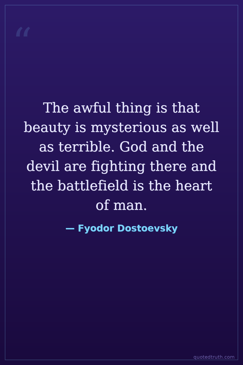 The awful thing is that beauty is mysterious as well as terrible. God and the devil are fighting there and the battlefield is the heart of man.