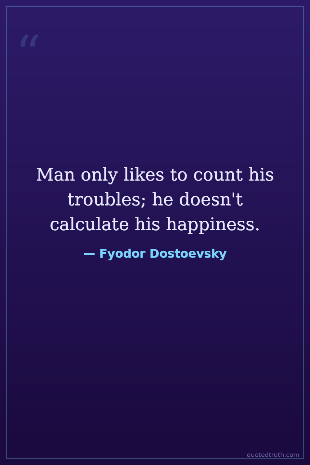 Man only likes to count his troubles; he doesn't calculate his happiness.