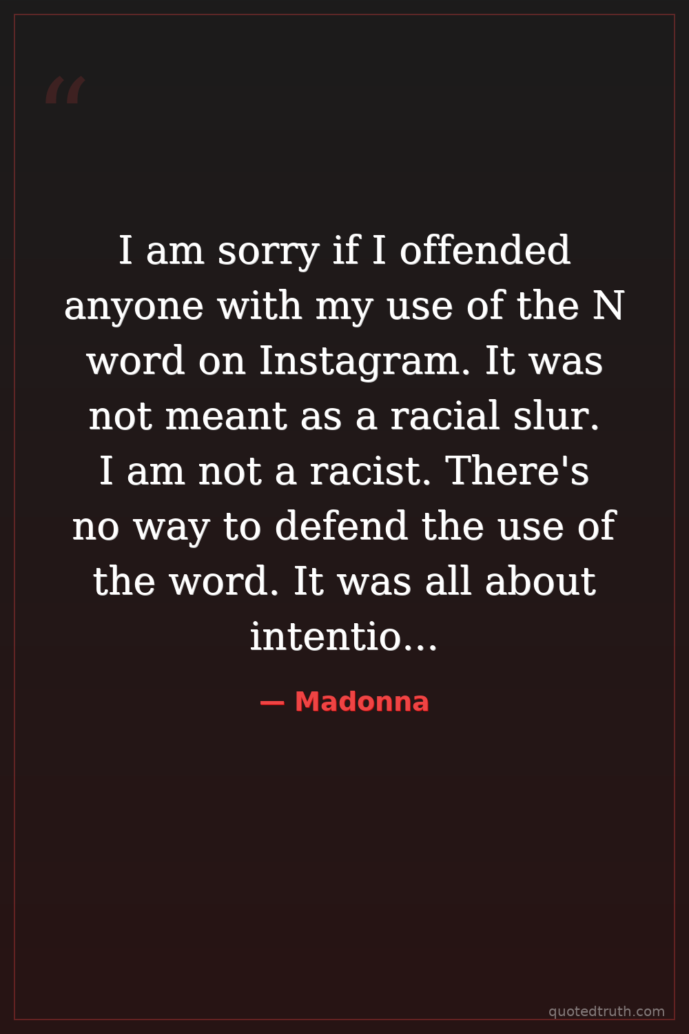 I am sorry if I offended anyone with my use of the N word on Instagram. It was not meant as a racial slur. I am not a racist. There's no way to defend the use of the word. It was all about intention. It was used as a term of endearment toward my son who is white.