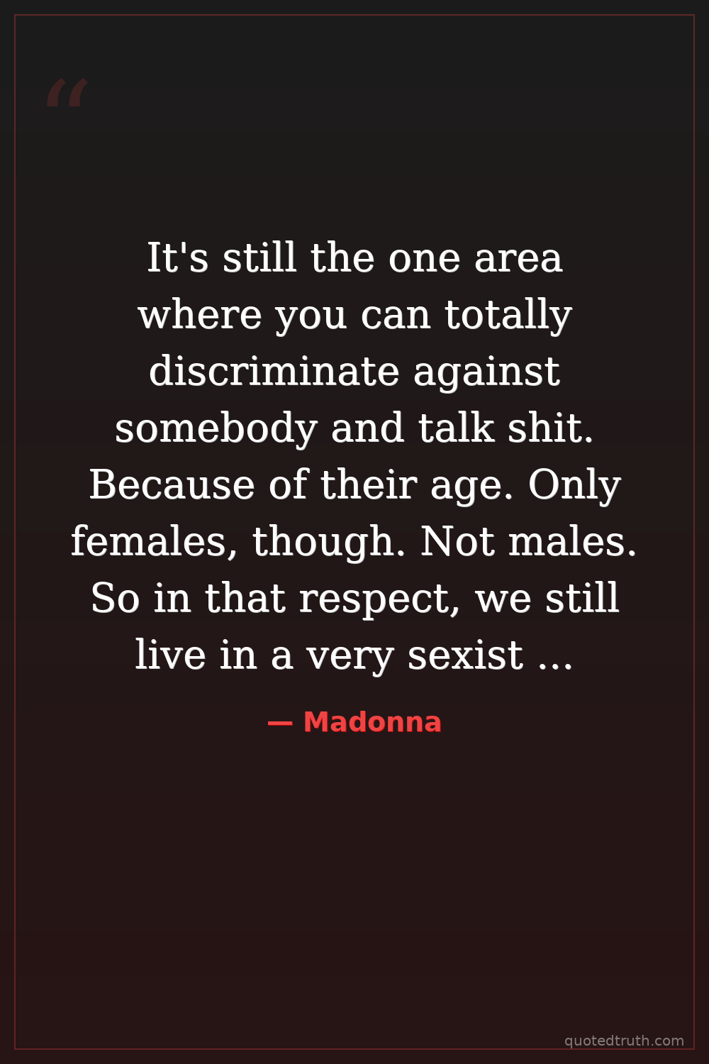 It's still the one area where you can totally discriminate against somebody and talk shit. Because of their age. Only females, though. Not males. So in that respect, we still live in a very sexist society.