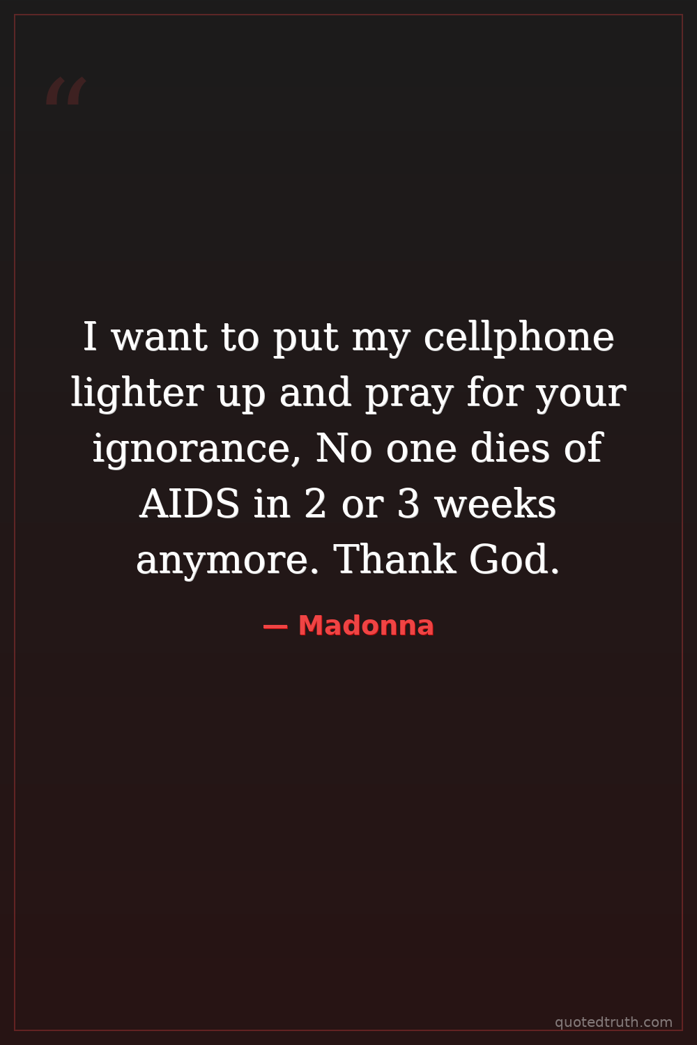 I want to put my cellphone lighter up and pray for your ignorance, No one dies of AIDS in 2 or 3 weeks anymore. Thank God.