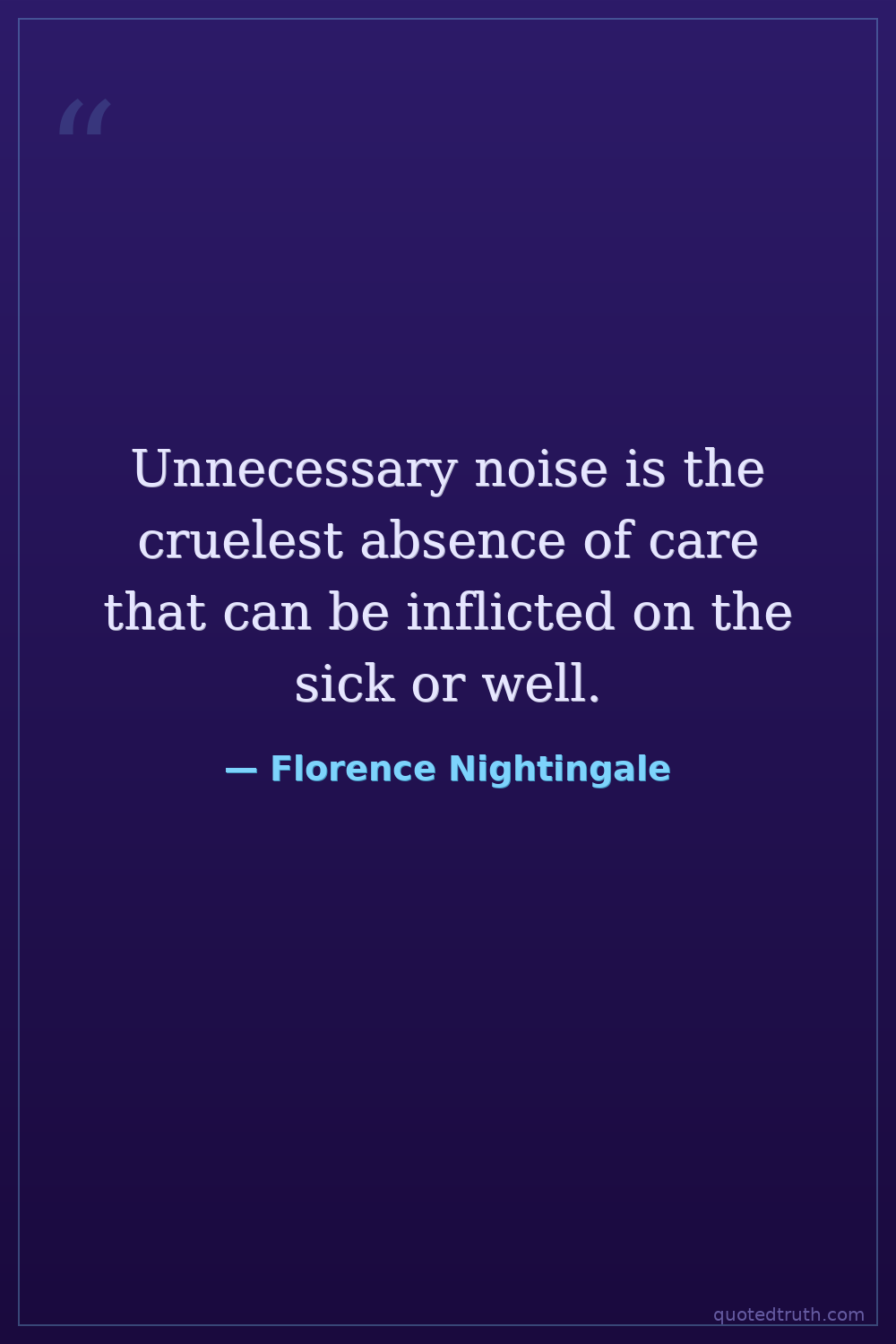 Unnecessary noise is the cruelest absence of care that can be inflicted on the sick or well.