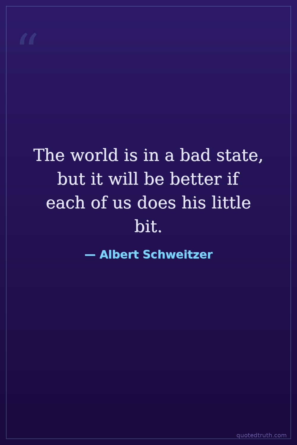 The world is in a bad state, but it will be better if each of us does his little bit.