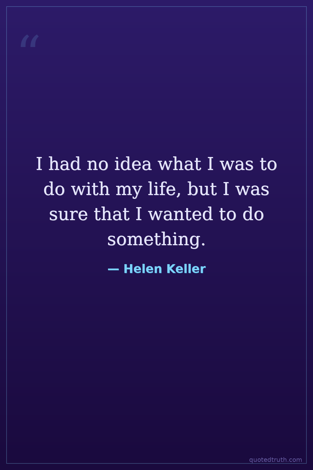 I had no idea what I was to do with my life, but I was sure that I wanted to do something.