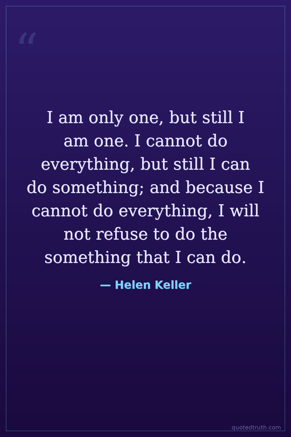 I am only one, but still I am one. I cannot do everything, but still I can do something; and because I cannot do everything, I will not refuse to do the something that I can do.