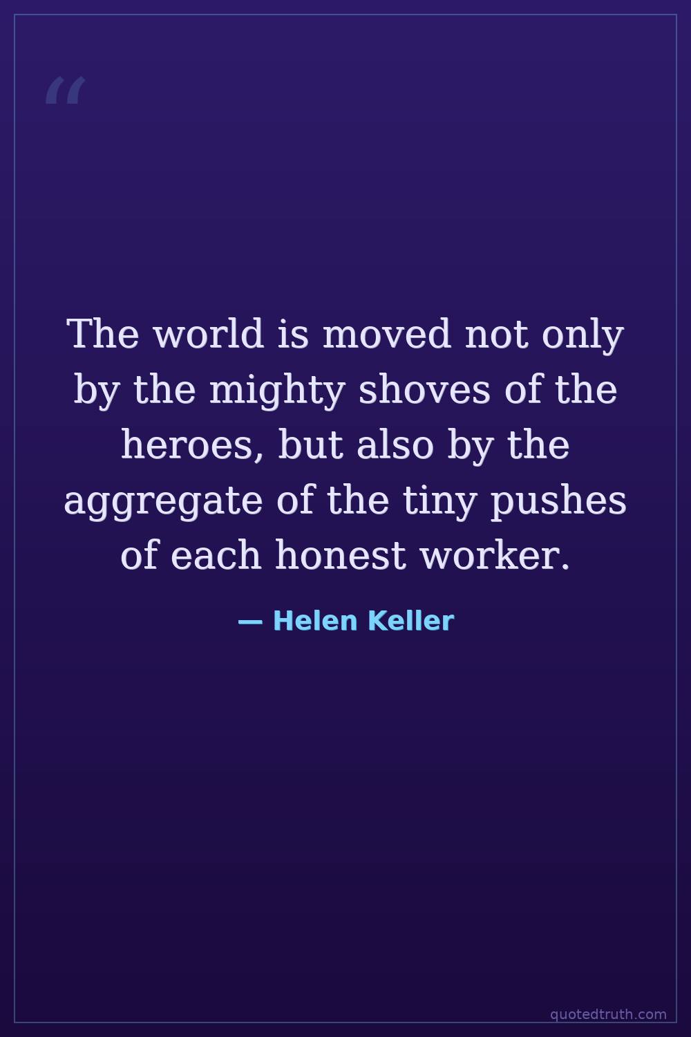 The world is moved not only by the mighty shoves of the heroes, but also by the aggregate of the tiny pushes of each honest worker.
