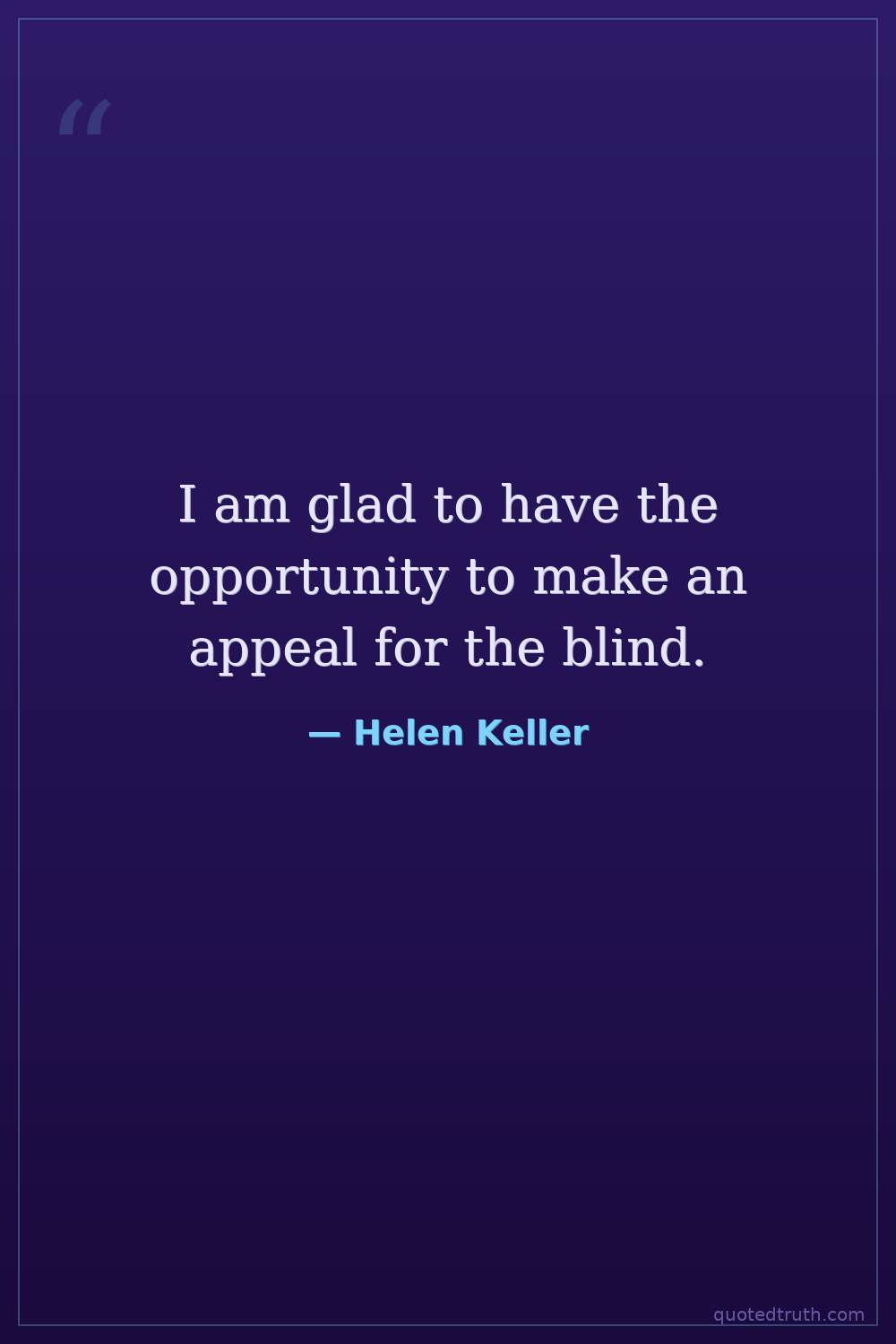 "Blindness and deafness are not the worst misfortunes. The worst misfortune is to have eyes and ears, and not to see and hear."