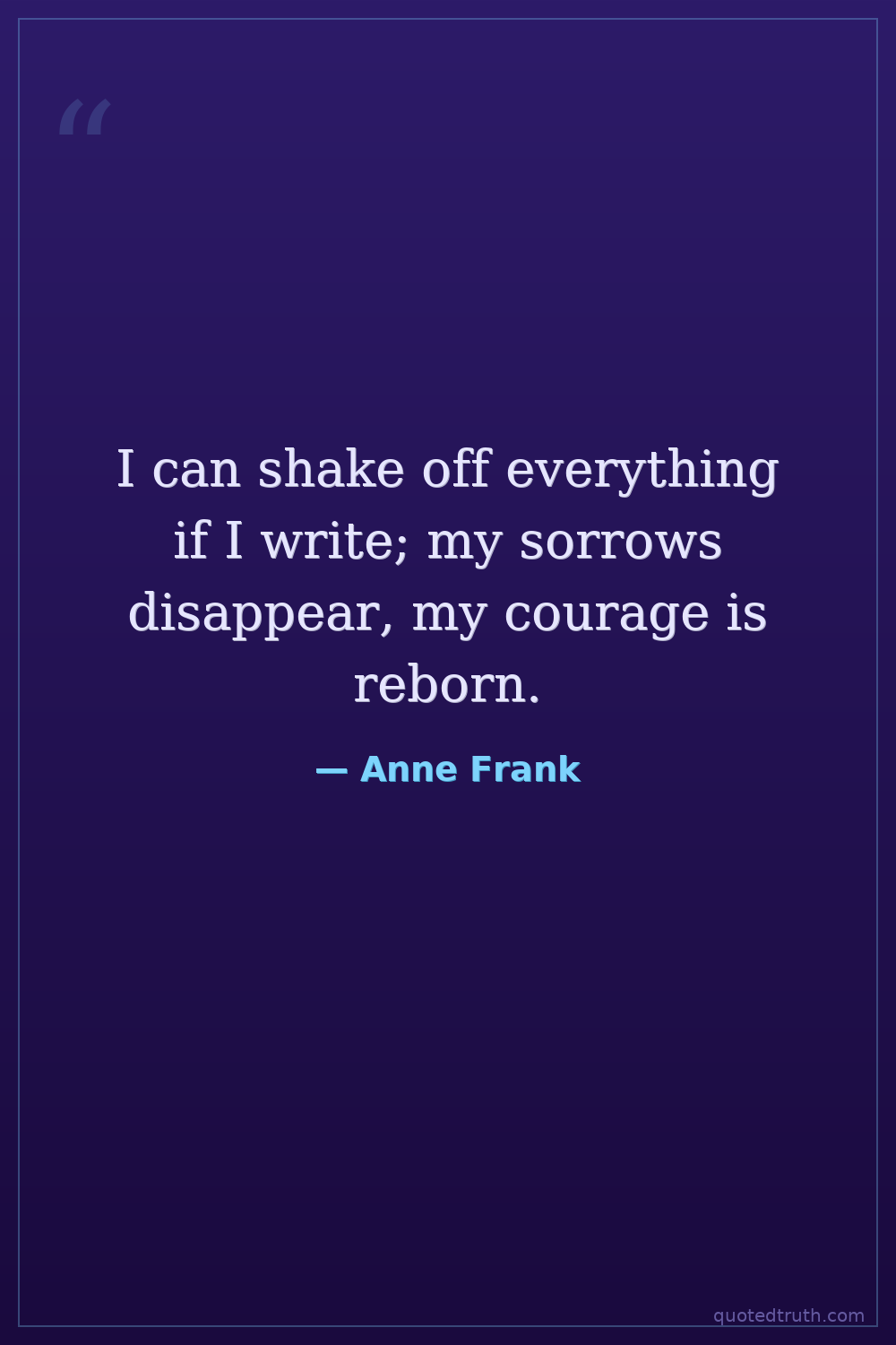 I can shake off everything if I write; my sorrows disappear, my courage is reborn.